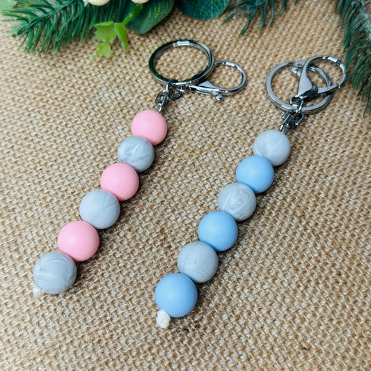 Pink and Blue Bead Keychain