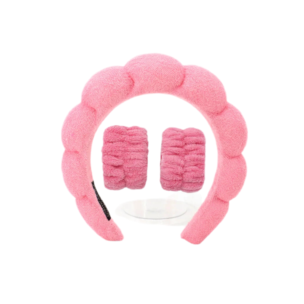 This set of 3 fashion microfiber washing wristbands scrunchies and puffy headband is perfect for your daily skincare routine. Made with soft and absorbent material, it gently holds back hair and prevents it from getting wet while washing your face or doing makeup. The spa-like experience is complete with the bubble headband, making it a must-have for all skincare enthusiasts.