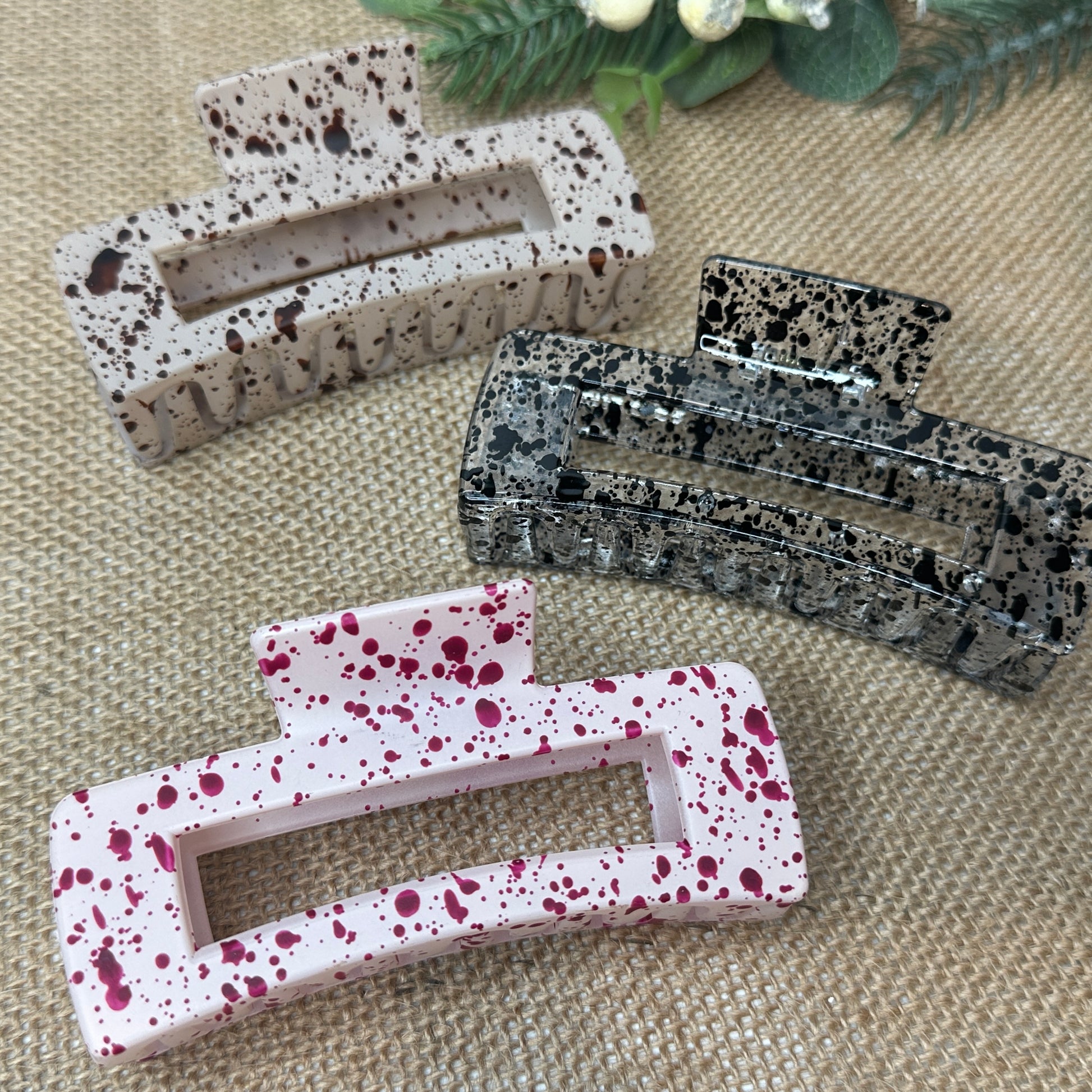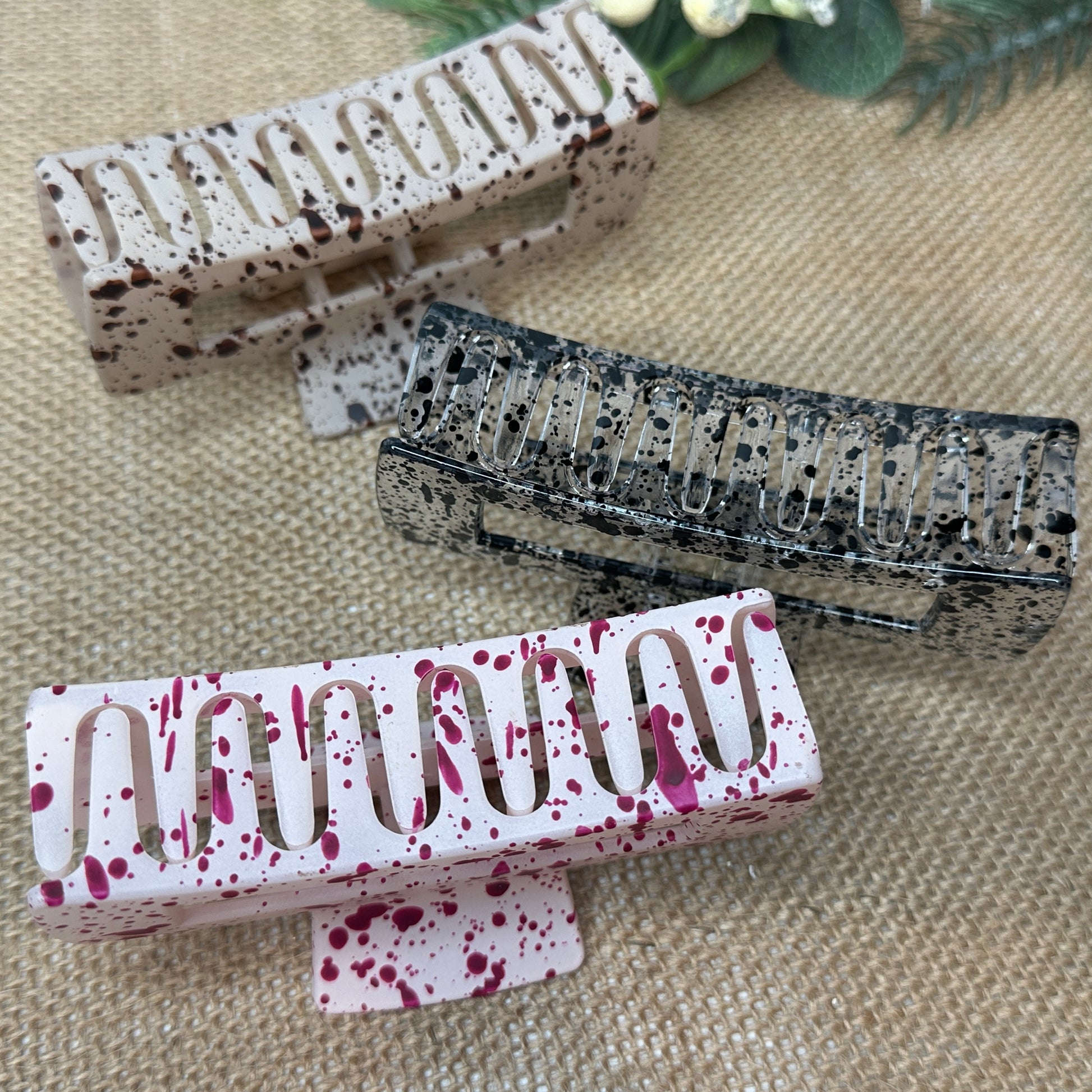 Upgrade your hair accessory game with the Large Splatter Claw. Expertly crafted for maximum hold and style, this oversized claw is designed to securely grip all hair types, keeping your look flawless throughout the day.
