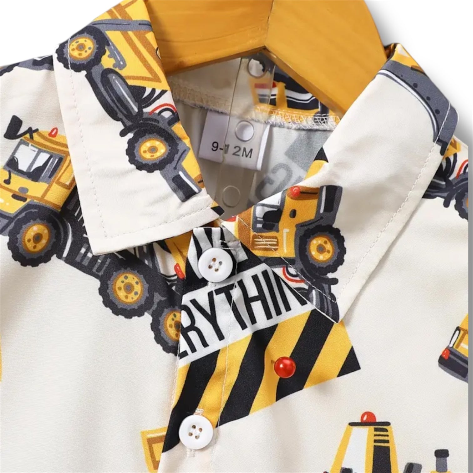 Introduce your little one to the joys of summer with our Dump Everything Tropical Button-Up Shirt with shorts. Designed for comfort and style, this kids' shirt features a trendy button-up design perfect for any casual occasion. Crafted from high-quality materials, it ensures your child stays cool and confident all season long.