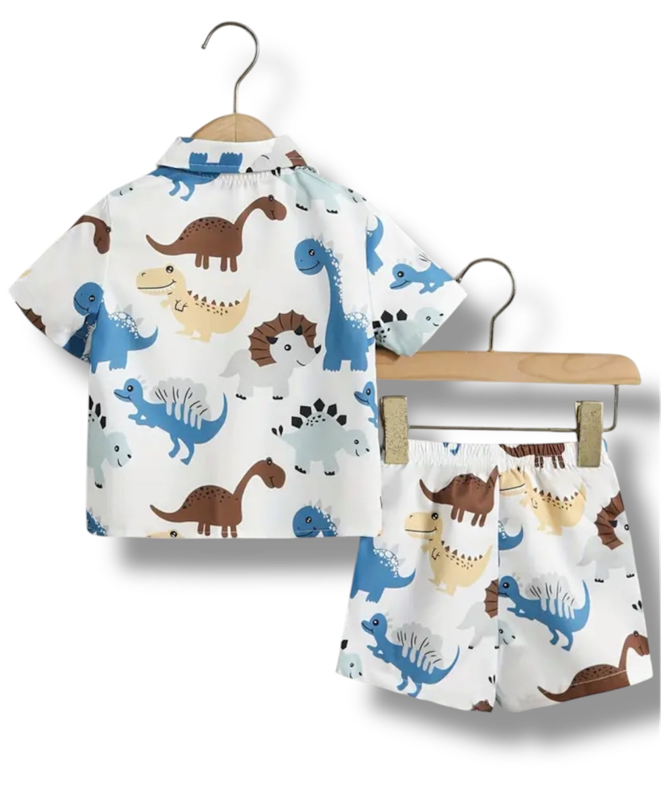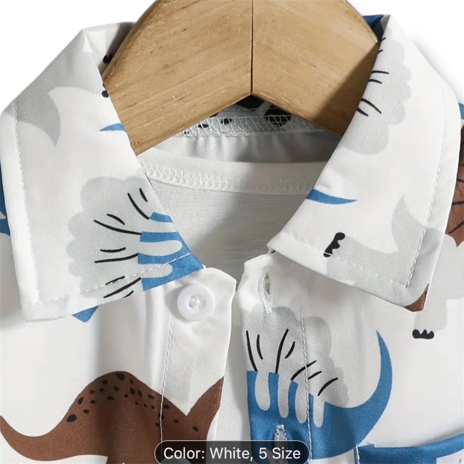 Introduce your little one to the joys of summer with our Rawr Dino Tropical Button-Up Shirt with shorts. Designed for comfort and style, this kids' shirt features a trendy button-up design perfect for any casual occasion. Crafted from high-quality materials, it ensures your child stays cool and confident all season long.