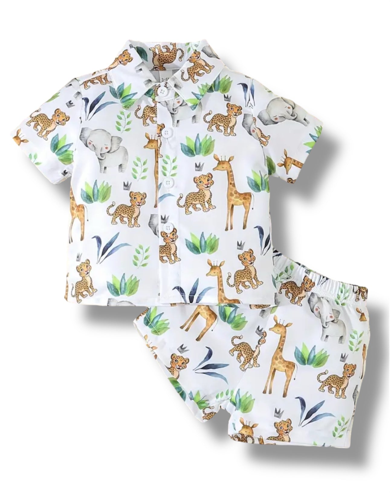 Introduce your little one to the joys of summer with our adorable Safari Buddies Tropical Button-Up Shirt with shorts. Designed for comfort and style, this kids' shirt features a trendy button-up design perfect for any casual occasion. Crafted from high-quality materials, it ensures your child stays cool and confident all season long.